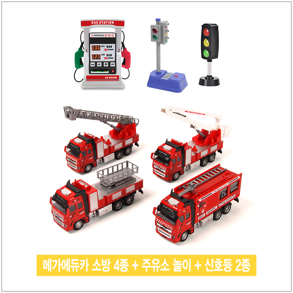 메가에듀카 소방 4종+ 주유소 놀이+신호등 2종