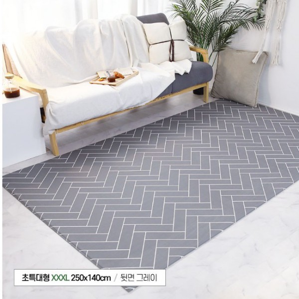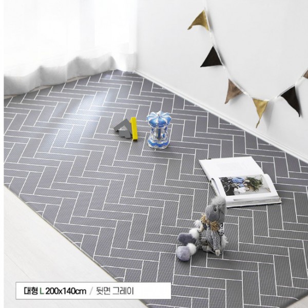 PVC 폭신폭신 초특대형 양면쿠션 거실놀이 매트, 화이트&그레이